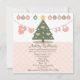 Ett julgran dekorerad med rosa hjärnprydnader med en stjärna på toppen och en babykläderlina bakom den pryder dessa söta och fina julbabykalasinbjudningar för en flicka. Prydnader hänger högt upp och stavas "It's A Girl!". Ett par underbart rosa bloss och babystrumpor och en bib hänger bakom trädet. Klicka på följande länk för att se alla våra original Chrissy H. konstverk och illustration © Chrissy H. Studios, LLC. Alla rättigheter reserverade.
