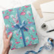 Gör det till en återjul jul-Rosa julflamingos på Santa Hats på en Aqua-bakgrund komplett med vit handflatan träd och retrostjärnor - Mycket Florida, Extreme retro