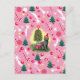 Det här är en vacker, lekfull och glad juldesign i rosa. Den illustrerar en svart katt med en Julgran och en mönster av kadaver, en liten grönt träd, snöflingor och stjärnor som flyter runt.