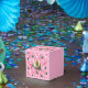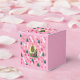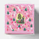 Snygg, lekfull, glad juldesign i rosa med en illustration av en svart katt med Julgran och mönster som flyter runt.