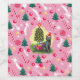 Snygg, lekfull, glad juldesign i rosa med en illustration av en svart katt med Julgran och mönster som flyter runt.