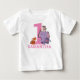 Den här vackra flicka t-shirt-skjortan har en design med en lila elefant med apa och liten fågel och en liten baby-tiger med stor rosa nummer ett. Anpassa den här t-tröjan med valfri namn.