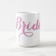 Vilken snygg väg att hålla bruden hydratiserad och avspänd under alla dessa speciella bröllopsevenemang! Perfekt för möhippor, svensexor eller till och med själva det stora evenemanget. Den här muggen är precis rätt för varma drycker som kaffe, te eller kakao. Det här är också en av de där hållbara produkterna som kan användas på en miljon sätt även efter att hennes stora dag har kommit och gått. Designen visar ordet Bride i rosa med ljusgrå kontur på vit bakgrund. Denna helt anpassningsbara design kan ändras till den färg eller ord som du väljer, samt överföras till andra Zazzle-produkter.