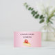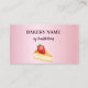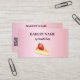 En rosa övertoningsbakgrund. Dekorerad med en ostekake med en röd jordgubbe. Anpassa och lägg till namn och text framtill. Tillbaka: Mallar för Ditt namn, titel, mobilt nummer, e-post och webbplats adress, ditt eget QR-nummer till webbplatsen eller social-mediekontot. Ikoner/konto för Facebook och Instagram.