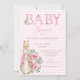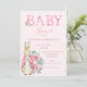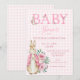 Söt liten rosa akvarell "BABY" typografi med kanin på en rosa gingham bakgrund tillagd i teckensnittet för baby shower inbjudan. Så söt för den lilla flickans baby shower. 100% kundnöjdhet med “Zazzle”
