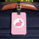 Silhouetten av en gullig rosa kanin sitter insida en vitblommaram med en vårgröntgräns. Söt, för rosa- och vitginghamkontroller smink bakgrunden.