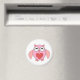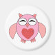 Den här magneten har en söt tecknad av rosa uggla med sömnig ögon, en liten näsa och söta små fötter. Uggla har ett stort rött kärlek-hjärta i mitten i sin buk och ett stort redo i vingar till en stor kram för ge.