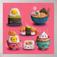 Fem underbart bubbliga japanska matkaraktärer ler med rosiga kinder och gnistrande ögon mot en glad rosa prickig bakgrund. En tamago-toppad onigiri, en ångande ramen-skål med ätpinnar och nori-paket, räksushirulle, söt bento-låda och två bedårande risbålar (en med en fluffig majonnäsvirvel) bildar en glad grupp redo för varje måltidsäventyr. Sprängfylld med lekfull charm och starka färger ger denna kawaii-illustration omedelbar glädje till t-shirts, klistermärken, telefonfodral, muggar, tote-påsar, förkläden och presenter för sushiälskare, ramen-fans och söta matentusiaster.
