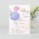 Rosa kläckande babydinosaurie inuti trasigt ägg baby shower inbjudan.