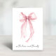 Elegant bröllopsfest vikt tackkort med en delikat ljusrosa akvarell av en kokett båge och "med kärlek och tack" i ett elegant skrivstil. På insidan kan du anpassa ditt tackmeddelande och lägga till ditt namn i en signaturliknande skrivstil, eller lämna tomt för handskrivna anteckningar.