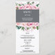 Den här elegantens inbjudan till rosa, grönt och korallvattenfärgspennan blommigt sommaren Bröllop Menu är perfekt för par tittar för en romantisk beröring till deras stora dag. Den här handmålade vattenfärgsblomman ram omger dina uppgifter om bröllop. Ge dina gäster en fantastisk första glimt av bröllop till komen. Det här kortet blir ett fantastiskt tillägg till dina bröllop-evenemang. Alla designer skrivs ut.