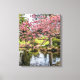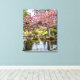 Dekorera en vägg med detta inslagna canvastryck som visar det fotografiska motivet av ett rosa körsbärsträd vid en damm med en simmande anka. Anpassa din canvasstorlek som önskat tillsammans med inramningsalternativ.