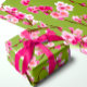 Rosa körsbärsblommor på chartreuse-grön bakgrund presentpapper