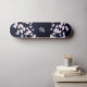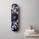 En dunkel rosa körsbärsblomstkvist på en stjärnklar natthimmels blå bakgrund. Anpassa denna eleganta blommiga galaxskateboard med din monogram: