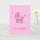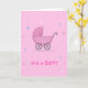 Unikt kort för att välkomna en babypojke till världen. Designat i rosa.