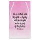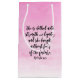 Proverbs31:25. Bibelversescripturen i ett härligt handskrivet borstar stilsorten med rosa vattenfärgbakgrund.