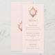 En elegant meny med en vintagekänsla, rekommenderas för ett bröllop med rosé och rose gold färger.