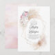 Modern och snyggt-baptisminbjudan är utformad med en vit blandning av vattenfärgat pampasgräs, rosa kung-proteablommor, vit ros och eukalyptus löv.