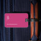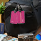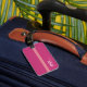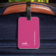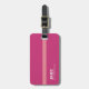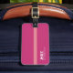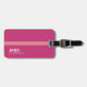 Fast och vanlig rosa bagagetagg med rand, diskret personlig med namn och initialer av resenären