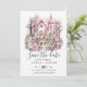 rosa kyrka blomster vattenfärg spara datumet inbjudningar