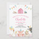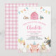 En rosa lada och gårdsdjur födelsedagsinbjudan till din lilla flickas ladugårdstema födelsedagsfest.