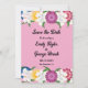 Denna inbjudan från elegant blommigt bröllop spara datum är perfekt för en modern bröllop i vår blommigt. Den romantiska designen har blå, gult, lila och burgundisk ro med elegant svart typografi på rosa.