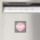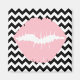 Rosa pissade läppar mot svartvit schevron eller zigzag mönster.