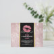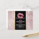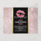 Födelsedags- eller annan evenemangskort med en bakgrund som består av rosgulda tropiska blad. Överlagrat ovanpå är en svart ram med en gul gradientkant, inuti finns rosa glitterläppar.