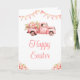 Söt påsk-kort med buntning och rosa lastbil fullt av påskägg. Ord kan bytas ut mot kostym för egna uppgifter eller krav.