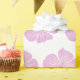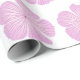 Den här inslagningen av papper har en rosa Lavatera-blomman blommar mönster mot en vit bakgrund.