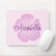 En enda rosa Lavatera-blomma blommar på blekens rosa med egen namn i ett skript lila-teckensnitt.