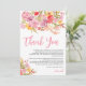 En romantisk examens-tack-design med handmålade akvarellblommor i rosa, lavendel, persika, gyllene gult och mjuk grönska. Den luftiga vita bakgrunden håller layouten förfinad och modern, medan den flödande skriften i rosafärgad ton lägger till värme och personlighet.