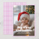 Rosa lavendelrutigt Min första julbaby Julkort