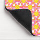 Den här musknappen har en geometrisk utformning som består av upprepade trianglar för rosa och orange med gult på en fält av benvit. Vill du ha samma design i olika färg? Säg det.