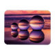 Ett vackert foto med tre kristaller bollar på en Kaliforniens strand vid solnedgången. Den spektakulära rosan och orangen färg och himlen reflektion i lensbollar gör detta till ett mycket unikt fotografi.