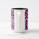 Rosa leopard skriver ut med svart ram som ska läggas till i er egen text. Välj mugg stil, färg och storleka som du vill.