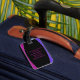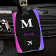 Girly rosa, lila och svart namn bricka för resväska. Vit flygplansikon och vit namn initialt. Anpassa namn, initial- och kontaktinformation.