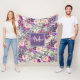 Rosa Lila Blommigt Monogram Namn Initial Fleecefilt