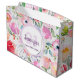 Sommar- och trädgårdsplan, bohemi, boho stil för 21:a födelsedag. Mjuka, feminin vattenfärgade blommor i rosa och persikofärgade färg med grönt löv mot vit bakgrund. Ett vitt och violett ram med mallar för namn, 21 år och datum. (födelsedatum eller årsdag) Lila och violett brev. Namn är skrivet med ett modernt handskript i stil.
