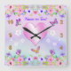 Så Söt Rosa och Lila, Garden of Flowers och Butterflies Clock med Namn, Din text eller Delete. Du kan flytta över den här söt klockdesignen till ditt val av tusentals andra fjärilrumsdekaler för flickors rosa och lila sovrum, kök och badrum. Söt Mors dag ger till Mamma eller henne. Underbart Flicka Babyskor.