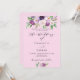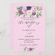 En rosa bakgrund. Dekorerad med lila akvarellmålade blommor och grönska. Anpassa och lägg till era namn och festdetaljer.