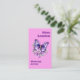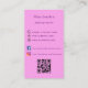 En rosa bakgrund. Dekorerad med en lila- och rosa-fjäril på framsidan. Anpassa och lägg till din logotyp, namn, titel och kontaktinformation. Lägg till URL/länk för webbplatsen till Qr-koden. Med Facebook- och Instagram-ikoner. Lila text.