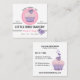 Marknadsför ditt bageri med detta unika anpassningsbara visitkort. Denna unika design har en rosa och lila cupcake prydd med ett godis hjärta, söta blåfåglar och text platshållare där du kan lägga till företagsnamn, företagsbeskrivning, datum då verksamheten etablerades och öppettider på framsidan. Baksidan av kortet har text platshållare som gör att du kan lägga till namn, titel, telefonnummer, adress, adresser till sociala medier och webbplats. Denna mångsidiga mall låter dig anpassa varje textområde för att göra denna design unikt din egen. Visa ditt bageris varumärke och produktlinje med dessa förtjusande visitkort. Perfekt för att marknadsföra ett hembageri, café, bageributik eller cateringfirma.