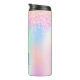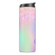 Ett trendig regnbåge enmajsliknande färgad, holografisk bakgrundsbild färg i rosa, lila, mynta grönt. Dekoreras med droppar i rosa och lila. Anpassa och lägga till namn och monogram initialer, lila färgad brev.