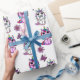 Rosa lila fantastiska enhörningar, blommor och fjärilar saga presentpapper.