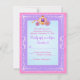 Denna romantiska rosa, lila och himmelsblå fantasysagobryllopsbekräftelsekort har ett rosa slott som svävar i luften på böljande mjuka vita moln, medan en utsmyckad vagn och två vita hästar väntar på att svepa bort det lyckliga paret. Det finns en blek rosa sirlig utsmyckning på lila kant som sitter ovanpå en fauxstrukturerad rosa bakgrund som matchar bröllopsinbjudan som visas nedan. Perfekt för Cinderella-kärlekshistorien som passar en kung och drottning eller prins och prinsessa. ***Vänligen notera att det inte finns några upphöjda element på denna inbjudan. Allt är tryckt plant. Den visas här på vanligt papper, men för en extra touch av elegans föreslår jag det metalliska is-pappret om din budget tillåter, eftersom det har en vacker subtil opalescens som verkligen får inbjudan att sticka ut. Jag skulle INTE använda något av de färgade papperna (champagne, guld, silver, filt, spräckligt) eftersom de KOMMER ÄNDRA färger