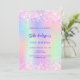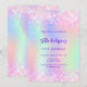 En girig och feminin 10 födelsedagsfest inbjudan. Framtill: En regnbåge, holografisk färgad med bakgrund i lila, rosa, myntgrönt. Dekorerad med rosa-konfetti. Anpassa och lägg till information om namn och party. Namn är skrivet med ett handskript stil, lila färgad brev.