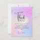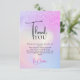 Visa din uppskattning med detta eleganta tackkort med en glitterig rosa och lila holografisk gradient. Fullt anpassningsbar text låter dig lägga till en personlig touch för dina bröllopsfestgäster.
