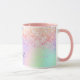 Rosa lila glitter stolografiskt namn-skript m mugg