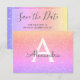 Rosa - Lila Ombre Pastel Gnistra Glitter Monogram Namn och Födelsedagsfest för första gången Spara datuminbjudan. Denna inbjudan är perfekt för den Lila Gnistran Glitter Sweet 16-Födelsedagsfesten som tittar för Rosa och Lila.
